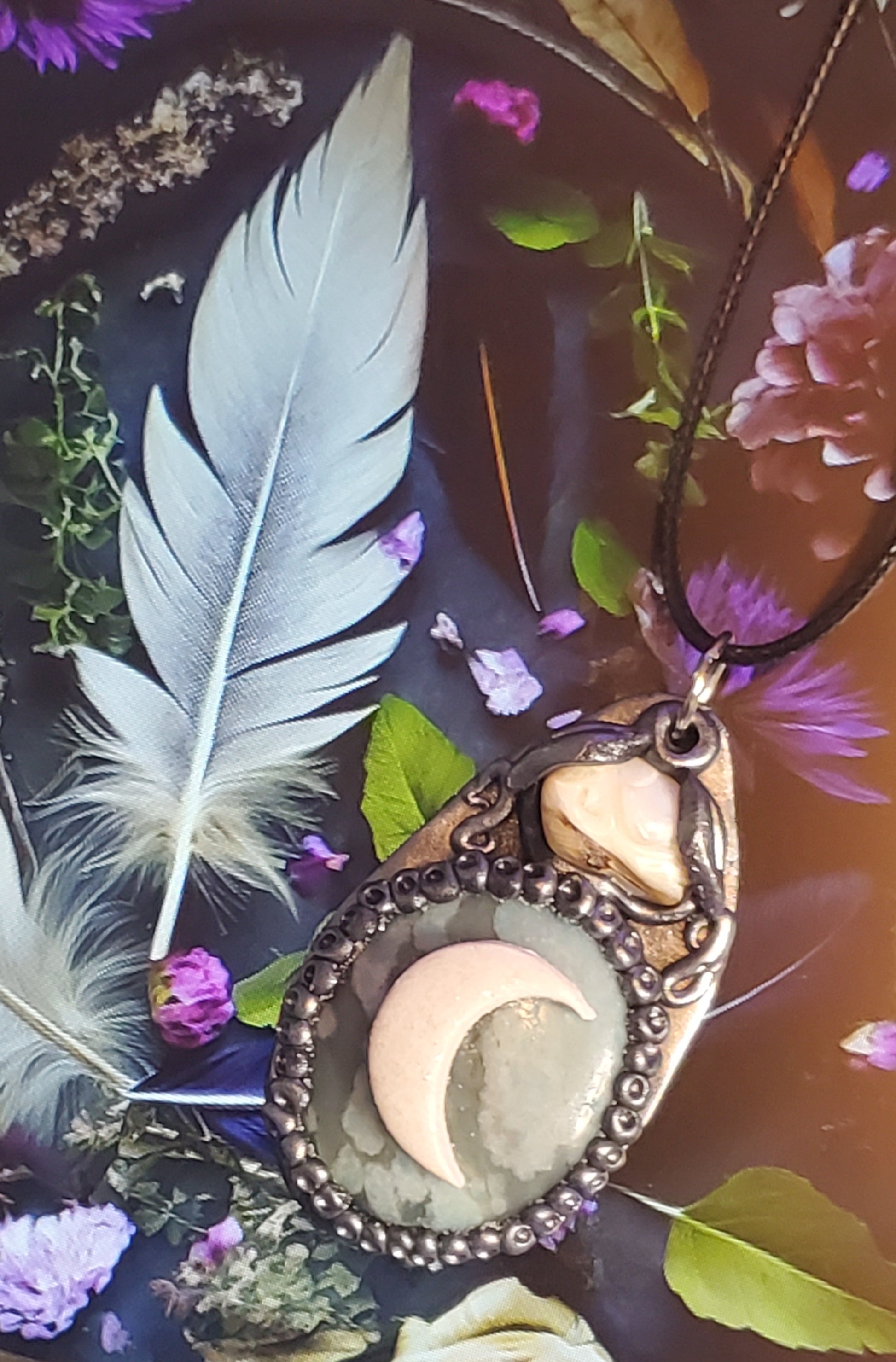 This enchanting necklace pairs the grounding energy of turquoise with the ethereal glow of milky opal, creating a piece that feels both earthy and otherworldly. The soothing blue-green tones of turquoise bring calm and balance, while the shifting iridescence of opal adds a touch of mystery and magic. Handcrafted with care, this necklace makes a beautiful everyday talisman or a meaningful gift for someone who treasures natural beauty and spiritual energy.